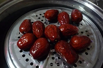 首先取适量枣冲洗干净,放入开水锅中蒸半小时,然后取出晾凉,以上步骤重复三次即可食用。