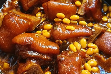 猪蹄煲黄豆是一道食补汤品,味道鲜美,具有补充营养、提供能量的功效。