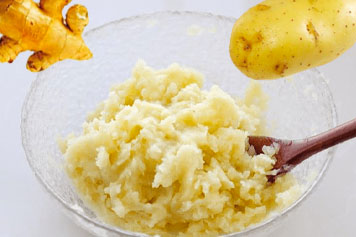 土豆味甘,性平;生姜味辛,性微温,两种食材同入脾胃二经,土豆和生姜捣成泥具有健脾温中、降逆养胃的功效。