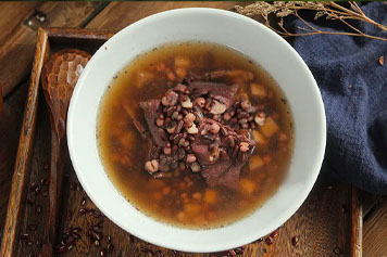 薏米味甘。入脾经,长于健脾止泻;赤小豆功善涩肠止泻;猪骨温补,能增进薏米、赤小豆的功效。故薏米赤小豆煲猪骨汤具有健脾止泻的功效,可用于泻痢以及脾虚湿盛引起的泄泻。