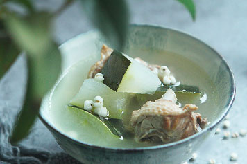 冬瓜性寒质滑,具有泻性,入大肠、小肠经,能导下焦湿热,长于利湿排脓;薏米性寒味淡,可利肠胃而渗湿,并清胃肠湿热,长于排脓消痈。故薏米冬瓜老鸭汤具有消痈排脓的功效,可用于内痈诸症,如肠痈。