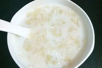 银耳牛奶口感鲜美、嫩滑易咽,具有补充营养、润肠通便的功效。