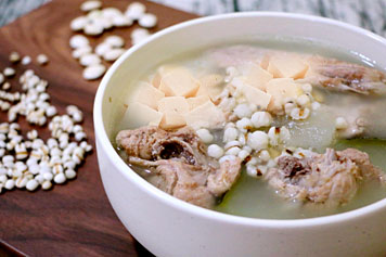 薏米淡渗甘补,入脾经,能利水消肿,健脾补中,渗除脾湿;土茯苓甘淡渗利,可解毒利湿。薏米土茯苓猪骨汤具有除湿的功效,适用于水肿、小便不利等症。