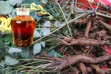 岩黄连根苦寒清热,可利咽消肿,与酒合用能助其力,故岩黄连根泡酒具有利咽消肿的功效,可作用于咽喉肿痛、咳嗽、痈肿疮毒等症。
