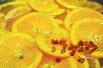 将橙子剥皮、切块,与花椒一同倒入砂锅中加水炖煮,出锅后即可食用。