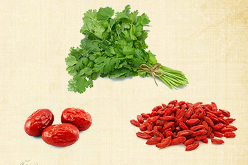 取适量枸杞、红枣、香菜,加入清水,煎煮一段时间即可服用。