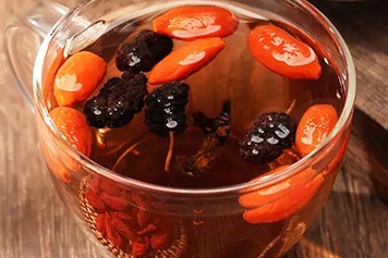 枸杞可滋肝肾之阴,为平补肾精、肝血之品;桑葚味甘可补益,可补肝肾之阴。故桑葚黄精枸杞泡水喝具有养阴补血之功效,适用于肝肾阴虚及血虚所致的头晕耳鸣、目暗昏花、气虚乏力、须发早白、腰膝酸软等病症。