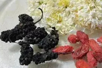桑葚干味甘、酸,性寒,归心、肝、肾经;枸杞味甘,性平,归肝、肾经;菊花味辛、甘、苦,性微寒,归肺、肝经。桑葚干枸杞菊花泡水喝具有益精明目、疏散风热、生津润燥的功效。