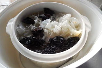 最好用热水泡双耳汤中的黑木耳和白木耳,热水可以缩短发泡时间,减少黑木耳和白木耳被细菌污染的机会。