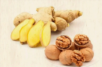 生姜味辛,核桃味甘,二者皆性温,入肺经。生姜加核桃具有祛风散寒、温肺止咳等功效。