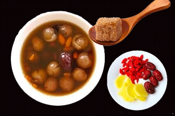 红枣、桂圆味甘,入心经,能养心血,安心神;红糖甘温,入肝经血分,长于活血养血。加上生姜、枸杞皆性温,合用组成生姜红枣桂圆枸杞红糖水具有养血安神的功效,可用于气血不足、心悸怔忡、健忘失眠、精神恍惚、无故悲伤欲哭、心中烦乱者。