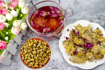 石斛菊花玫瑰花泡水喝有一定的药用价值,具有明目、行气解郁的功效。