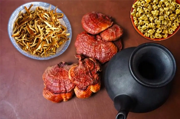 石斛味甘,性微寒,归胃、肾经;灵芝味甘,性平,归心、肾、肺经;陈皮味苦、辛,性温,归脾、肺经,而石斛灵芝陈皮煮水具有健脾益胃、滋阴补气、生津止渴等功效。