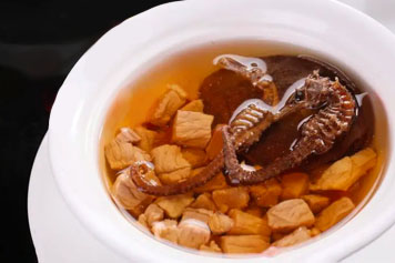 海马味甘、咸,性温,归肝、肾经,瘦肉质地细嫩、营养丰富,瘦肉炖海马具有补充营养、温肾壮阳等功效。
