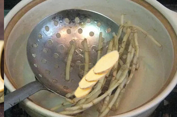 鱼腥草加姜片煮水味道较辛辣,具有利尿通淋、解毒的功效。