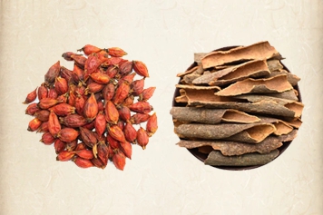 栀子味苦,性寒,入心、肺、三焦经;肉桂味辛、甘,性大热,入肾、脾、心、肝经。栀子和肉桂配伍具有活血止血、清心除烦、补肾益精等功效。