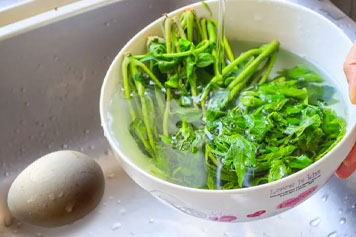 取适量香椿子洗净,加入清水、鹅蛋一同熬煮,放凉后即可食用。