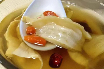 鱼胶炖枸杞子红枣中的鱼胶在炖煮前建议先用温水泡发,可使口感更为细腻。