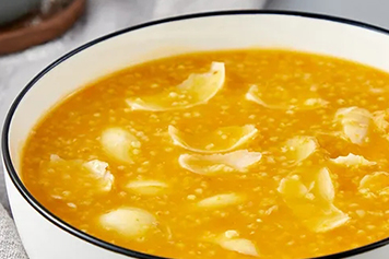 小米粥加百合营养丰富、口感细腻,具有补充营养、促进消化、养阴润肺的功效。