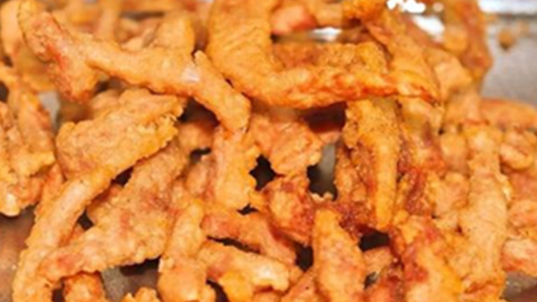 炸肉加热后可直接食用,也可蘸孜然、辣椒粉、蕃茄酱等调味品一起食用,不可过量食用。肥胖、血脂较高、高血压患者应谨慎食用。