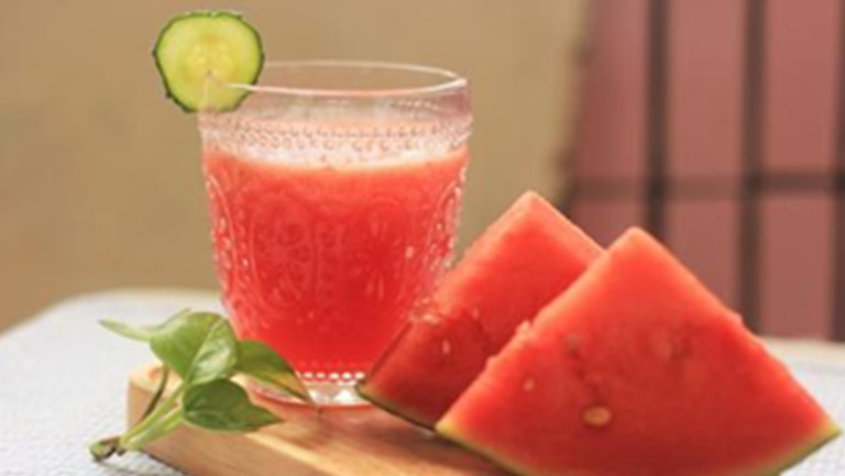 西瓜汁可直接饮用。可随餐饮用或在两餐中间饮用。可与芹菜同食,有利尿消肿的作用,还可与绿茶同饮,有清热降暑的作用。