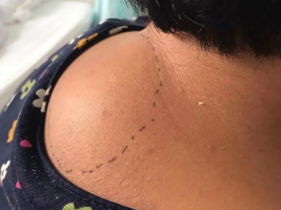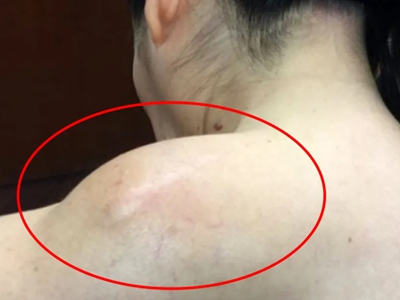 脂肪瘤患者左侧肩膀上有个明显的突起疙瘩,表面为正常皮肤颜色,没有瘙痒、疼痛等不适症状,由于肿物的因素,还会出现左右肩膀高低不等的现象。