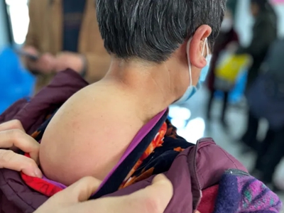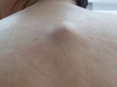 脂肪瘤患者后背靠近右侧肩膀的位置出现单独的大疙瘩,形状呈圆形,直径有4厘米左右,表面光滑。随疾病进展,当压迫神经时,可出现局部疼痛。