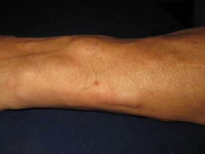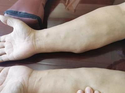 脂肪瘤患者小胳膊出现很多包块,形状、大小不等,部分会出现融合,肉眼可见胳膊皮肤表面凹凸不平,但是无颜色改变,没有不适症状,不必过于紧张。