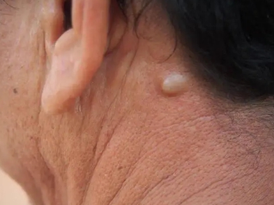 脂肪瘤耳朵后面出现了几个圆形软包图