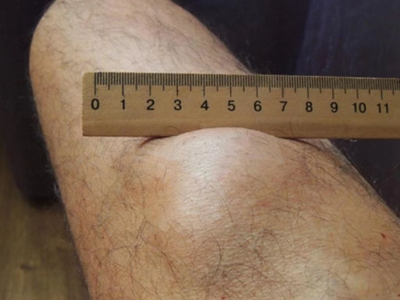 脂肪瘤患者大腿靠近膝盖位置出现一个硬块,高出皮面,表面呈红色,边界不规则,多生长缓慢,一般不感觉疼痛,不需要进行特殊治疗。