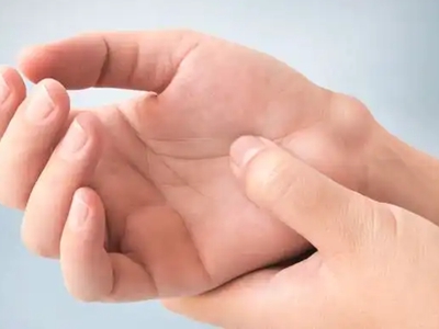 脂肪瘤患者手掌靠近大拇指根部出现包块,表面皮肤隆起,边界不清晰,用手触摸有一定弹性,一般没有自觉症状,可能会影响手部的正常活动,需积极治疗。
