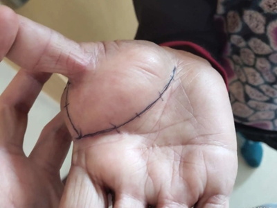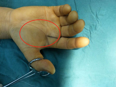 脂肪瘤手掌大拇指根处长个大包图