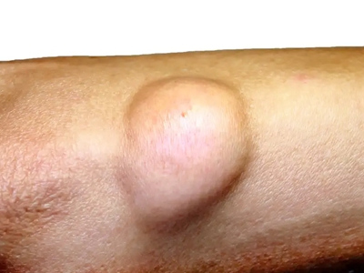 脂肪瘤患者右侧胳膊出现一个近似鸡蛋大小的疙瘩,外观呈半圆形,表面光滑并且可推动,隆起皮面,一般没有自觉症状,偶尔有些压痛,很少能自行吸收。