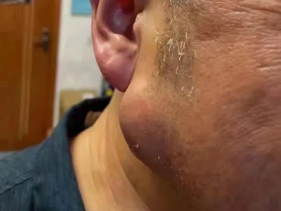 脂肪瘤右侧脸颊下边出现一个大包图