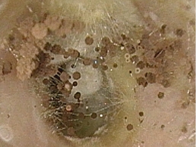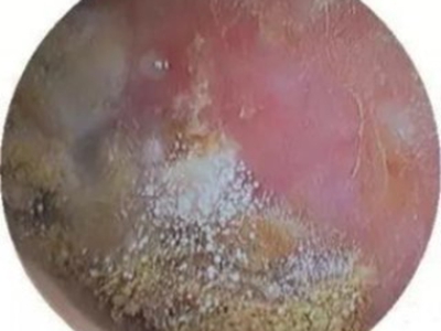 霉菌性外耳道炎外耳道有厚黄痂表面有白色物质图