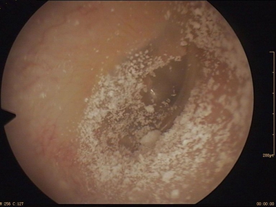 霉菌性外耳道炎外耳道表面有一层白色雪花状分泌物图