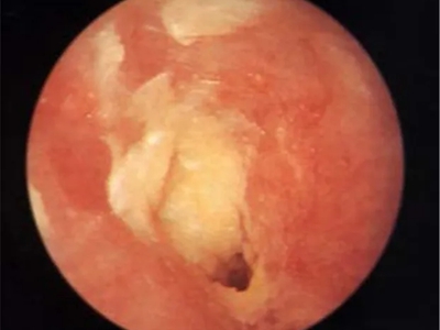 霉菌性外耳道炎外耳道检查时,外耳道弥漫性充血,而且附着有大量黄白色脓液,质地较为粘稠,阻塞部分外耳道口,伴随有外耳道瘙痒和灼热感。