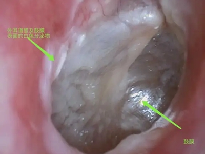 霉菌性外耳道炎外耳道及鼓膜上有大量灰白色分泌物图