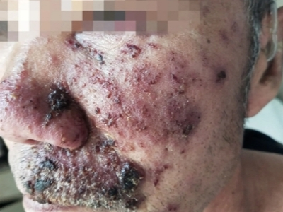 牛痘样水疱病非典型重型脸上有大片黑痂图