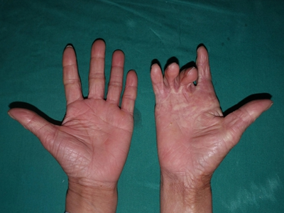 牛痘样水疱病非典型重型手指关节弯曲僵硬图