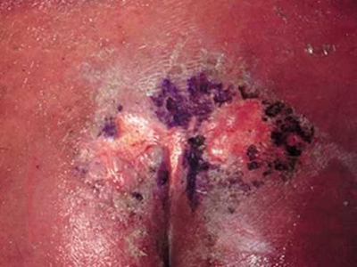 Ⅲ度急性放射性皮炎臀部红肿严重图