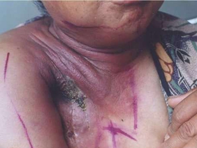 Ⅲ度急性放射性皮炎颈胸部位皮肤发紫图