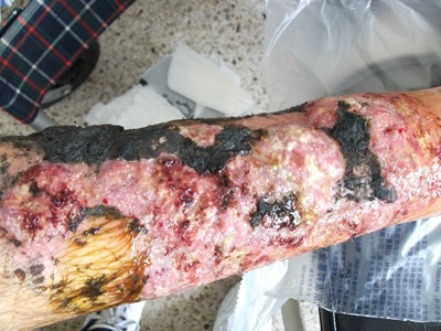 Ⅲ度急性放射性皮炎小腿皮肤发黑图