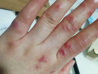 寒冷性脂膜炎患者手指皮下有散在的红色结节,大小不一,边界不清晰,部分结节可融合,按压后会有疼痛感,一般在接触寒冷物质后出现。