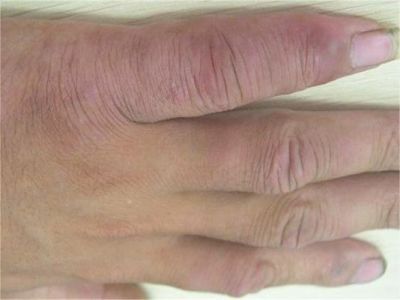 寒冷性脂膜炎手指肿胀呈紫红色图