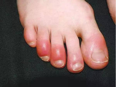 寒冷性脂膜炎临床表现为脚趾局部皮肤温度降低,并出现红肿的皮下硬结,结节高起于皮肤表面,大小不等,用手触摸时可有一定的触痛。