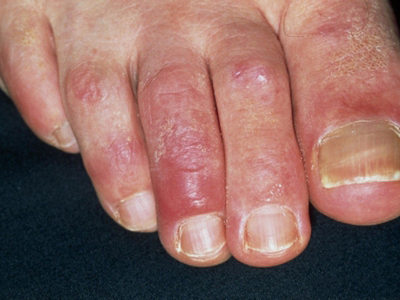 寒冷性脂膜炎脚趾头上有红色斑块图