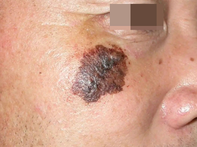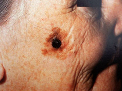 恶性雀斑样痣又名黑素雀斑、原位黑素瘤,是一种扁平的表皮内新生物,是原位恶性雀斑样痣黑色素瘤的一种类型,其发生于日光损伤后的皮肤。恶性雀斑样痣多见于老年人,特别是长年累月在户外劳作的劳动者,男性比女性多见。
