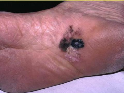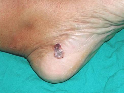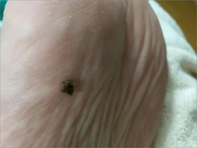 恶性雀斑样痣脚后跟有一块隆起的黑斑图