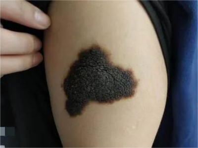 恶性雀斑样痣的患者,在胳膊上表现为大片形状不规则的黑斑,边缘颜色较浅,呈黑褐色,黑斑略微突出,表面粗糙,有裂纹,可以遵医嘱采取手术切除治疗。